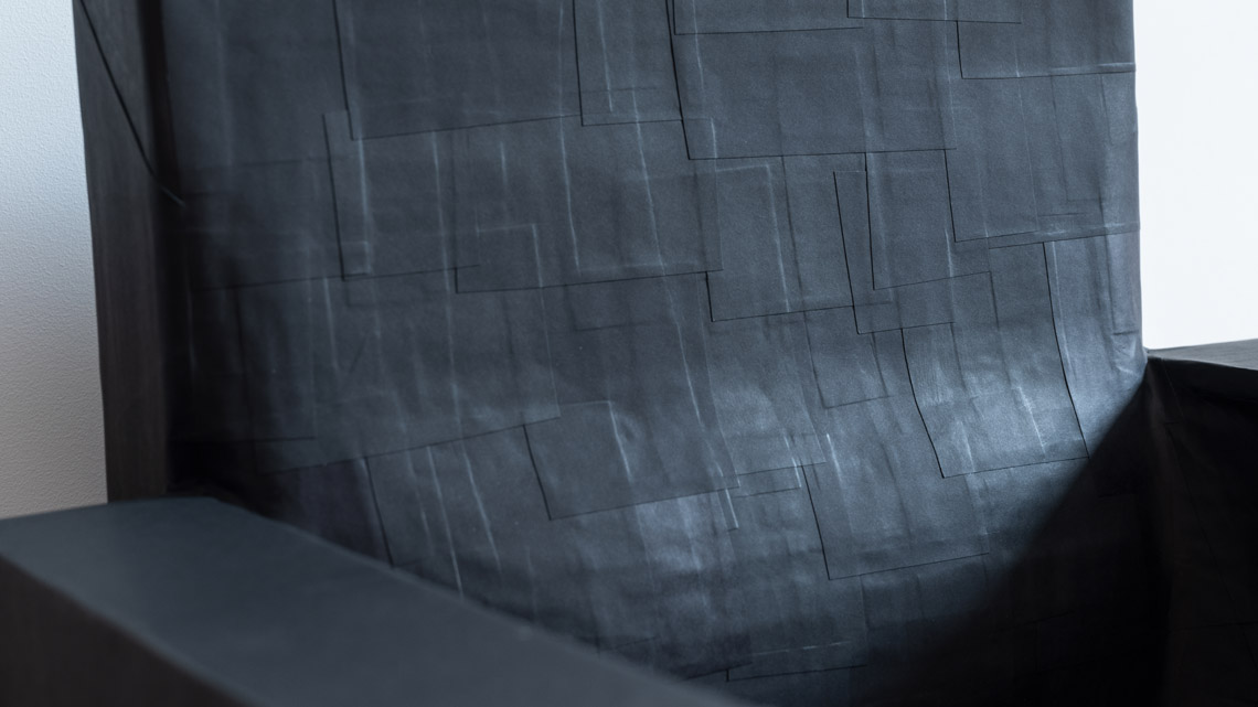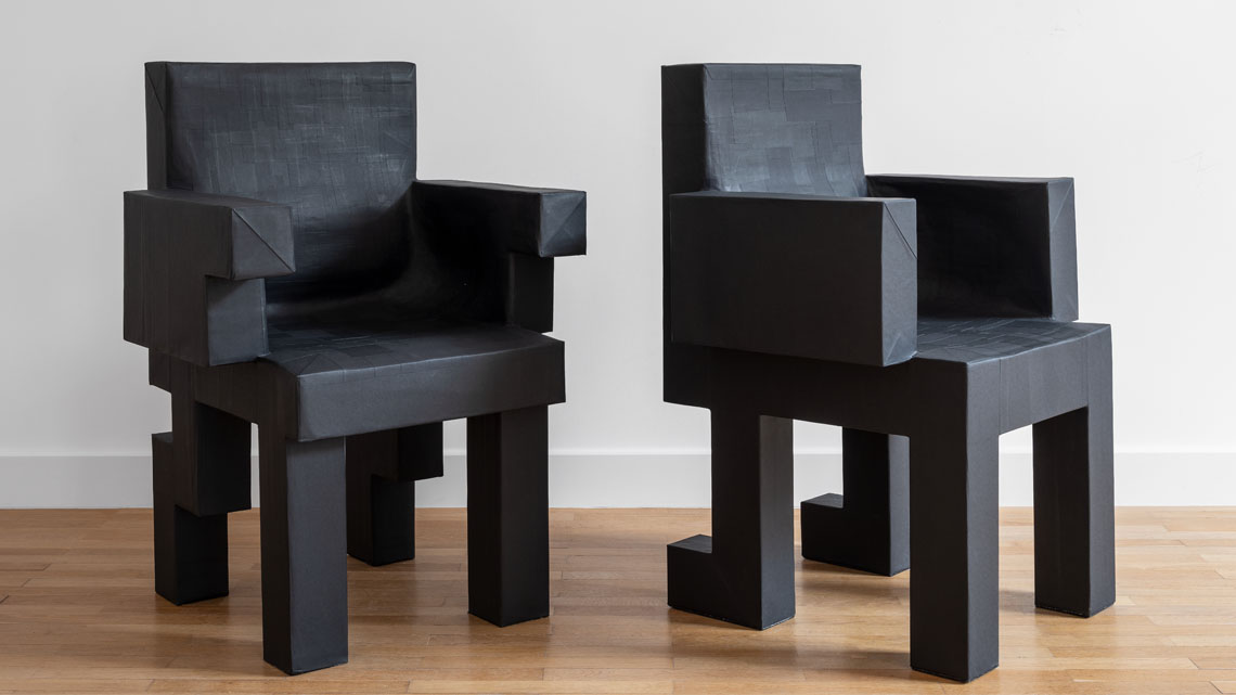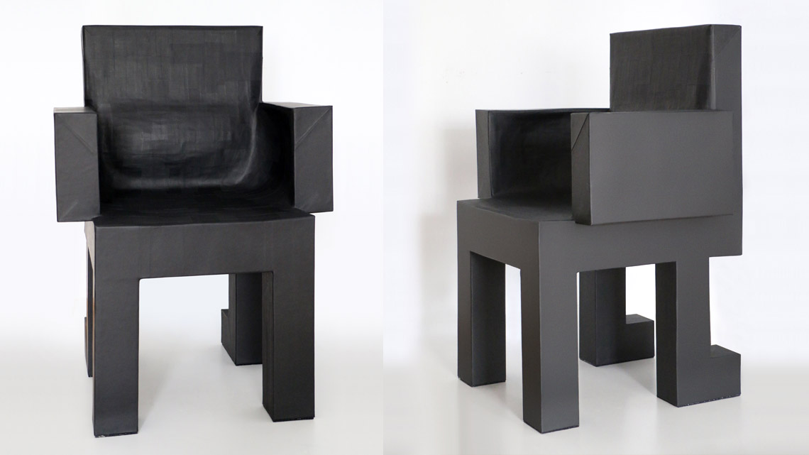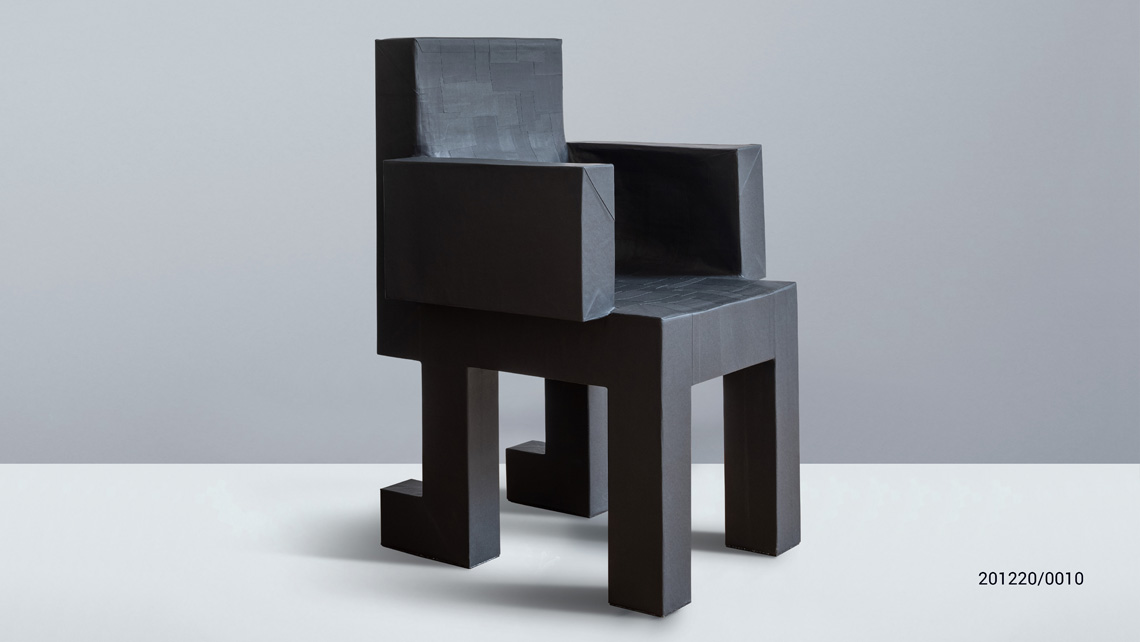 This chair is built for comfort and world dominion. The seat section is made of strong black paper. Quieting the room to enable the chosen pieces to speak clearly about what matters to you. The single edition chair was created by Vadim Kibardin in 2020. Inner surface is almost entirely coated in black paper and has an original Kibardin pattern.