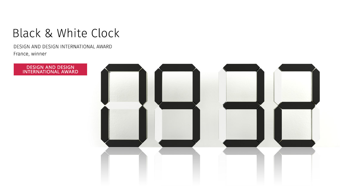Digital clock: only figures, no case, only the necessary – only accurate time. Each figure has self-contained power supply and independent control, it can be fixed to any surface autonomously. A light sensor will switch the clock to an invert mode: the figures are white in the dark time of day and black at daytime.