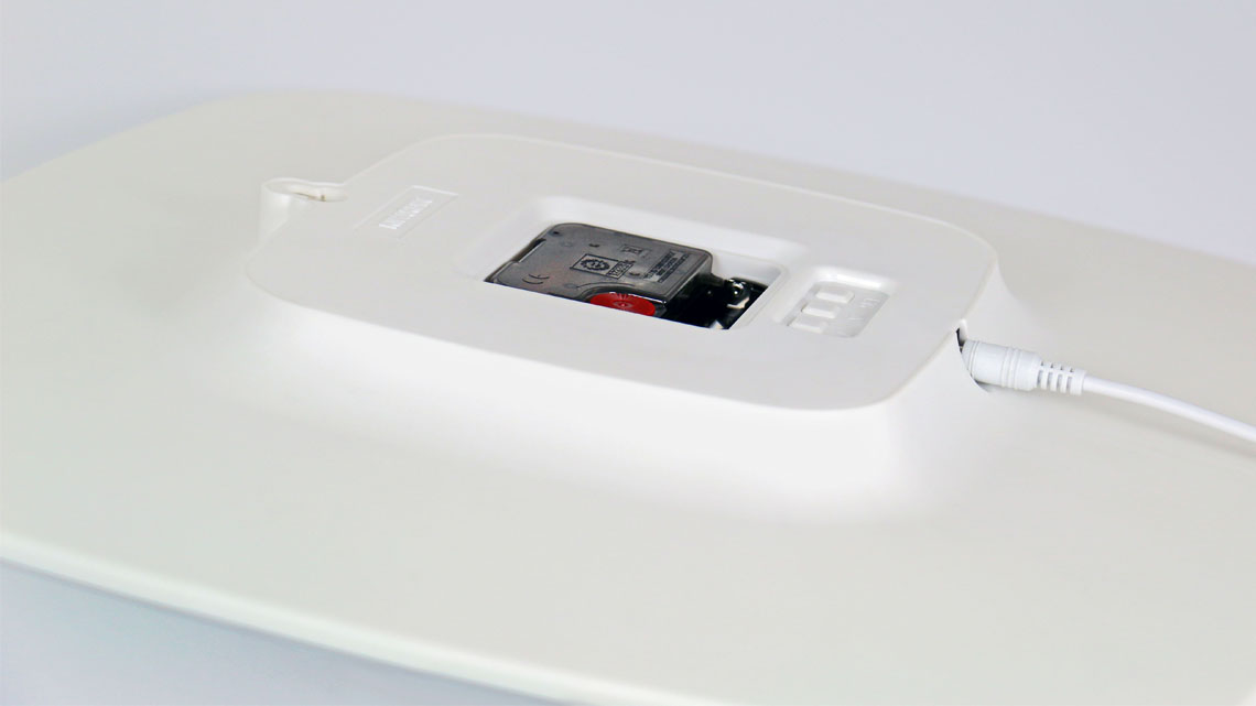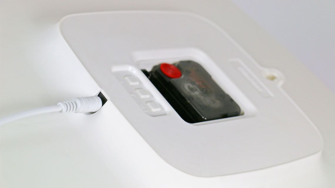 The standard set contains an AC adapter with a five meter cord. Installing the clock’s cords behind your walls is a great way to extend your home or office without cluttering your floors with a tangle of cables.