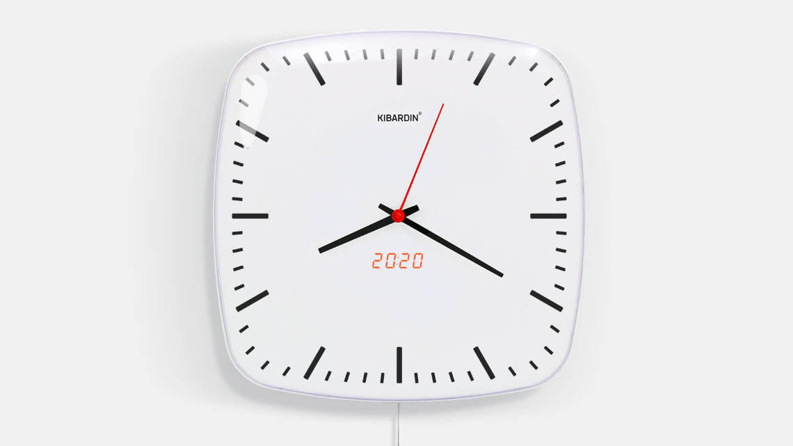 This KIBARDIN Classic clock measures 346mm x 346mm x 43mm and is available in white, with a red LED digital module display. At KIBARDIN we understand and adhere to the principles of great design. Simplicity and functionality are fundamental to the KIBARDIN philosophy. Clocks are made to last, built from superior quality raw materials, and have easy-to-read dials and simple-to-operate functions.