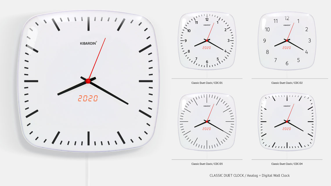 These wall clocks not only display the accurate time in your home, they also add a retro-futuristic accent to your décor. Classic designs with Arabic numerals, indexes, and different stick combinations, in addition to modern digital interfaces mean this collection of clocks can be used in virtually any setting – including kitchens, home and business offices, and social interiors. The digital module of the Classic Duet Clock runs only on mains electricity power, however, the CPU operates automatically and maintains the time in case of mains power outages.