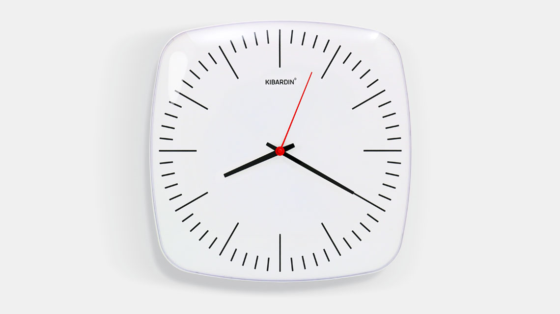 This KIBARDIN Classic clock measures 346mm x 346mm x 43mm and is available in white case. At KIBARDIN we understand and adhere to the principles of great design. Simplicity and functionality are fundamental to the KIBARDIN philosophy. Clocks are made to last, built from superior quality raw materials, and have easy-to-read dials and simple-to-operate functions.