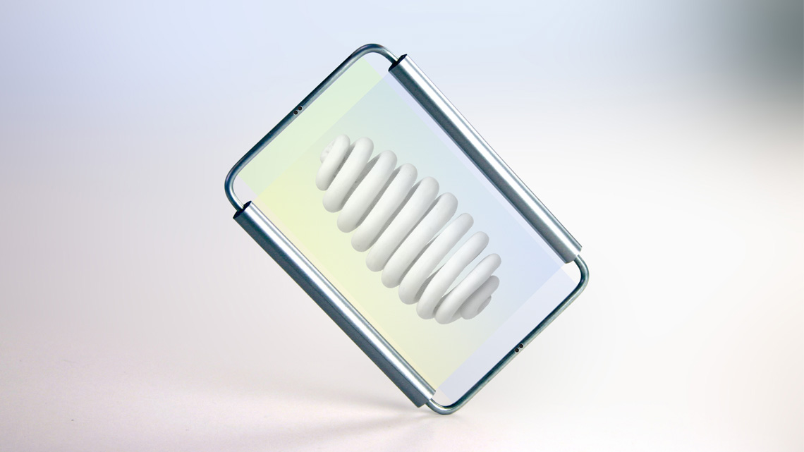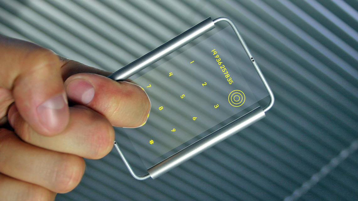 The Frame Phone features an empty center where one would expect the display and the inner components of the device to be. Vadim Kibardin design proposes the use of projection technology instead. The picture would be emitted from the minimalist perimeter and cast upon the user's hand or the surface on which it rests. All electronic parts of the cellphone would be encased in the grippable, empty rectangle.