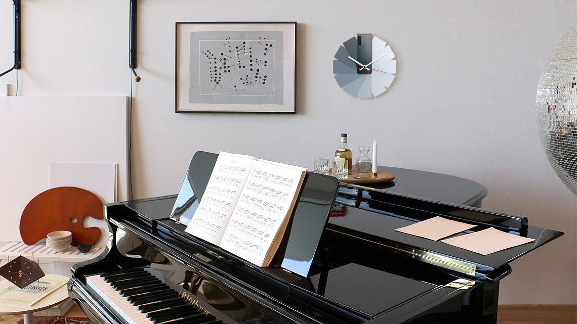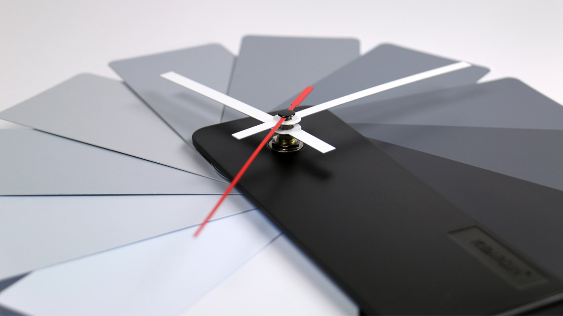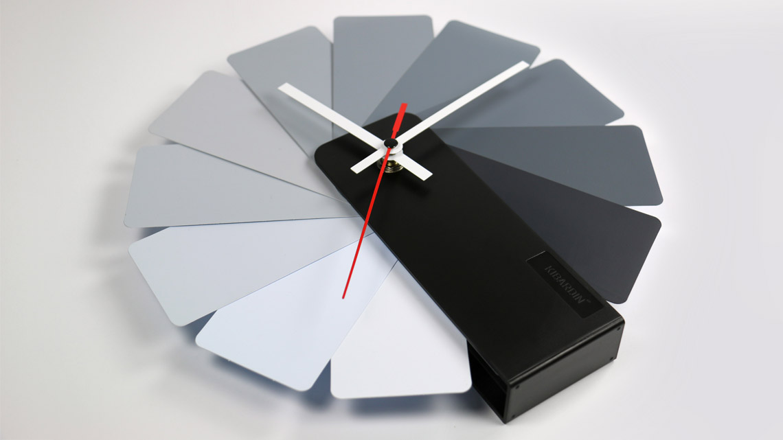 Eight unique color combinations let you more strongly feel the wide range of characteristics associated with this design. The Transformer Clock comes in Black or White, Monochrome, Multicolor, and Spotted color systems. Black hands are seated against the warm white body, and white hands are used on the black case. It is always easy to read the time due to the sharp lines and contrast in colors between the hands and the background.