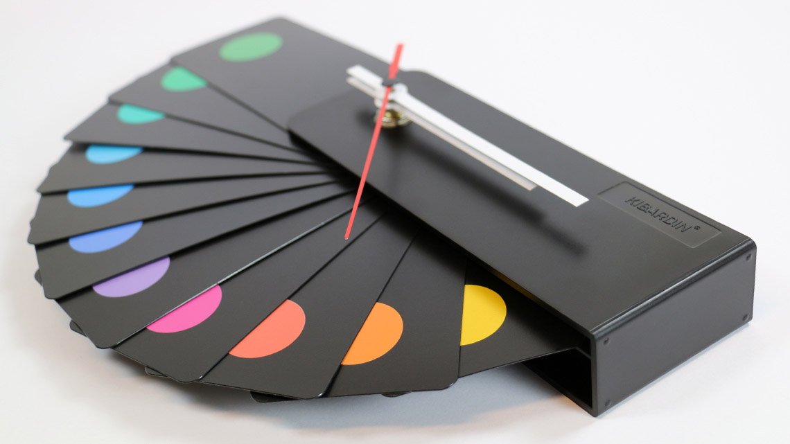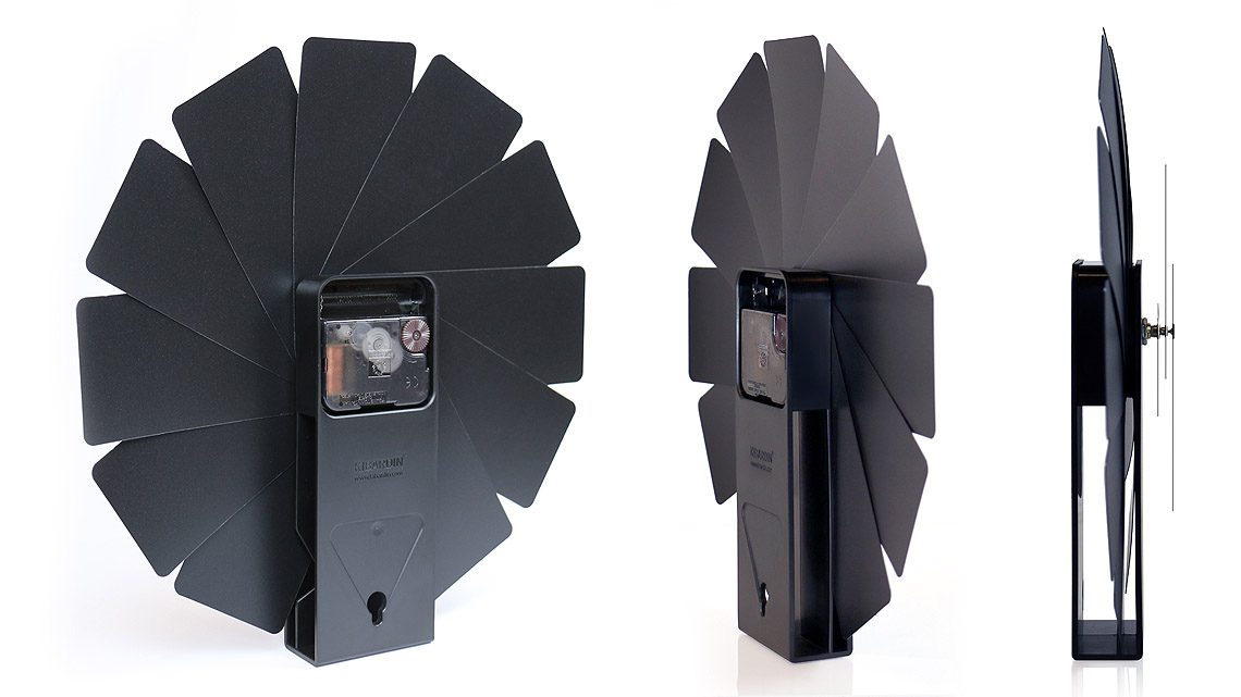 Transformer Clocks have a black or white-colored body with a framed-spring construction of eleven sheets that can fold or unfold to display or minimize the clock face. Due to this clever design, the clock compacts into a small package which reduces your delivery costs. The Transformer Clock enables you to demonstrate your creativity, to create the shape and color range of the dial to suit any type of interior. It could grace any room in your home or your office with its colorful presence on a desk or wall. Or alternatively you can set up several clocks, each displaying a different world time zone.
