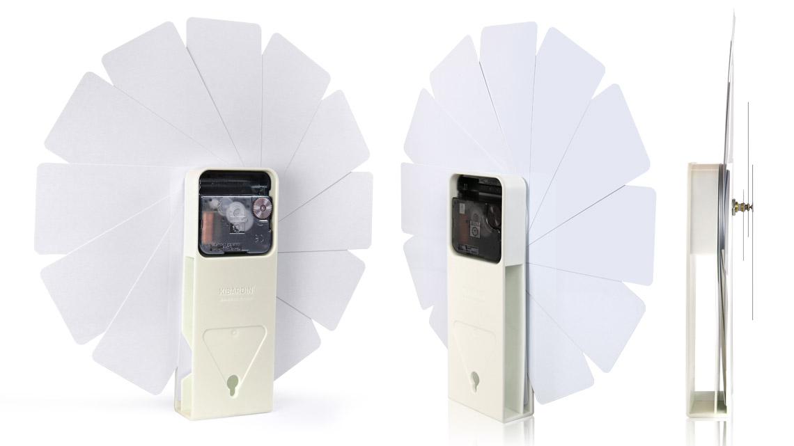 The blades are made of PVC or PP, and the surprisingly light body of ABS plastic with matt treatment makes the clock installation very easy.