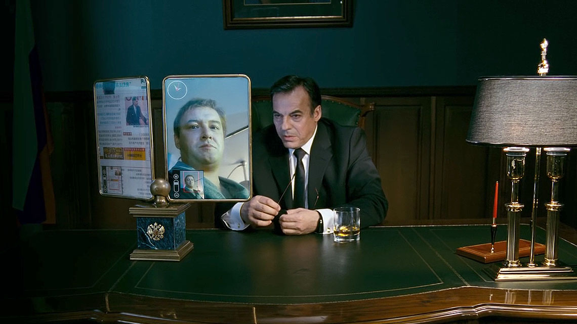 The stationary computer on Victor's table in his studyOn the surface of a heavy pedestal from malachite in which all electronics are placed, the monitor in the form of two gilded frameworks is fastened.