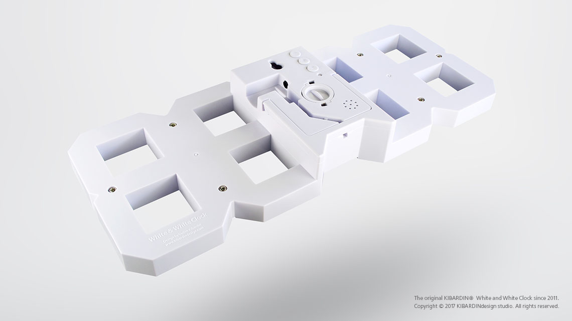 The White & White Clock designed by Vadim Kibardin is a modern 3D interpretation of the traditional digital clock.